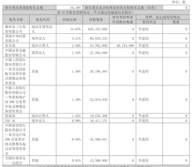 截至2025年9月30日,潮州市三江投资有限公司持股为33.67%,香港中央结算有限公司持股为4.21%,张万镇持股为2.8%,中国证券金融股份有限公司持股为1.44%,中国工商银行股份有限公司-易方达创业板交易型开放式指数证券投资基金持股为1.4%;