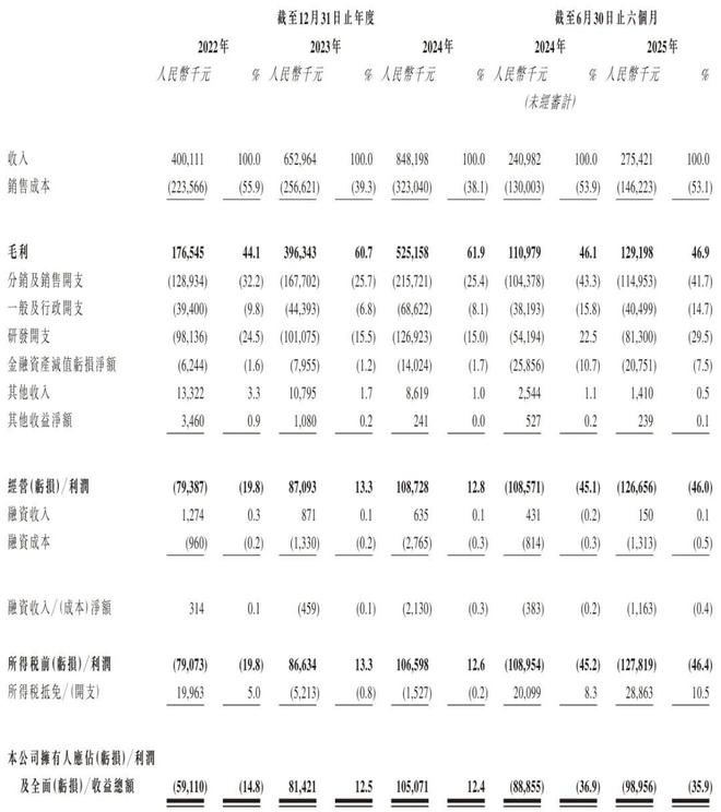 卓越睿新2025年上半年营收为2.75亿元,毛利为1.29亿元,毛利率为46.9%;经营亏损为1.27亿元,经营利润率为-46%;公司拥有人应占亏损为9896万元,期内利润率为-35.9%。