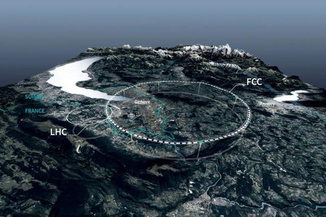 在瑞士与法国交界,阿尔卑斯山脉地下100米深处,埋藏着一条周长约27公里的巨大环形隧道,这就是2012年捕捉到希格斯粒子的大型强子对撞机(LHC)。按照欧洲核子研究中心(CERN)的计划,LHC至少还要再运行15年,但物理学家已开始迫不及待地规划它的“接班人”——未来环形对撞机(FCC)。