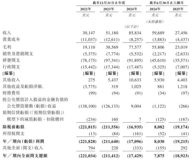英矽智能2025年上半年营收为2746万美元,较上年同期的5969万美元下降54%;期内亏损为1922万美元,上年同期为盈利803万美元。