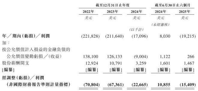 英矽智能2022年、2023年、2024年经调整净亏损分别为7080万美元、6736万美元、2267万美元;2025年上半年经调整净亏1541万美元。