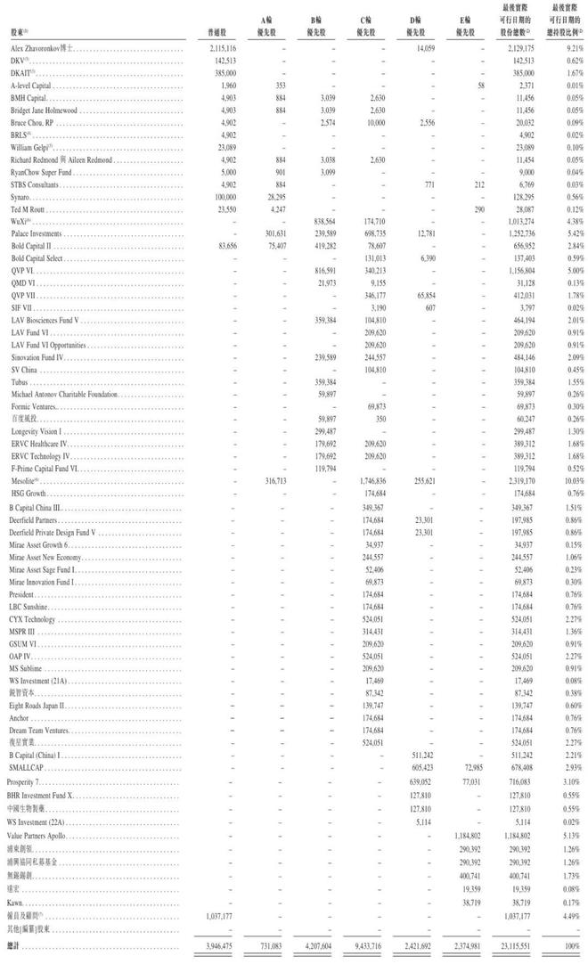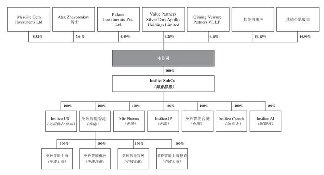 IPO后,Aleksandrs Zavoronkovs持股7.64%,Mesolite Gem Investments持股为8.32%,Palace Investments Pte持股为4.49%,Value Partners Silver Dart Apollo持股为4.25%,Qiming Venture(启明创投)持股为4.155%。