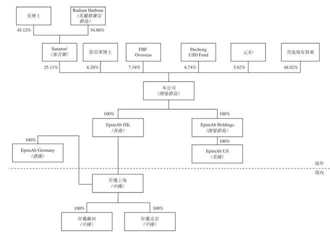 徐亚军博士持股为6.28%,元禾一共持股为5.62%,FIIF Overseas持股为7.34%,Decheng USD Fund持股6.74%;