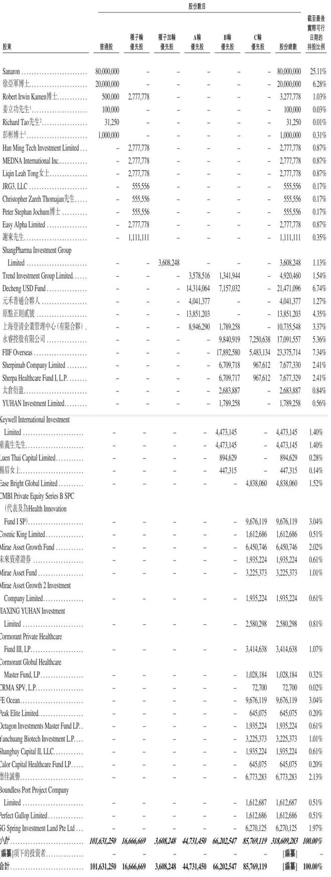 MiraeAsset Growth 2 Investment持股为0.61%,JIAXING YUHAN Investment持股为0.81%,Cormorant Private Healthcare持股为1.07%,FE Ocean持股为3.04%,Octagon Investments Master Fund LP持股为0.61%,Yanchuang Biotech Investment持股为1.01%,Shangbay Capital II持股为0.61%;
