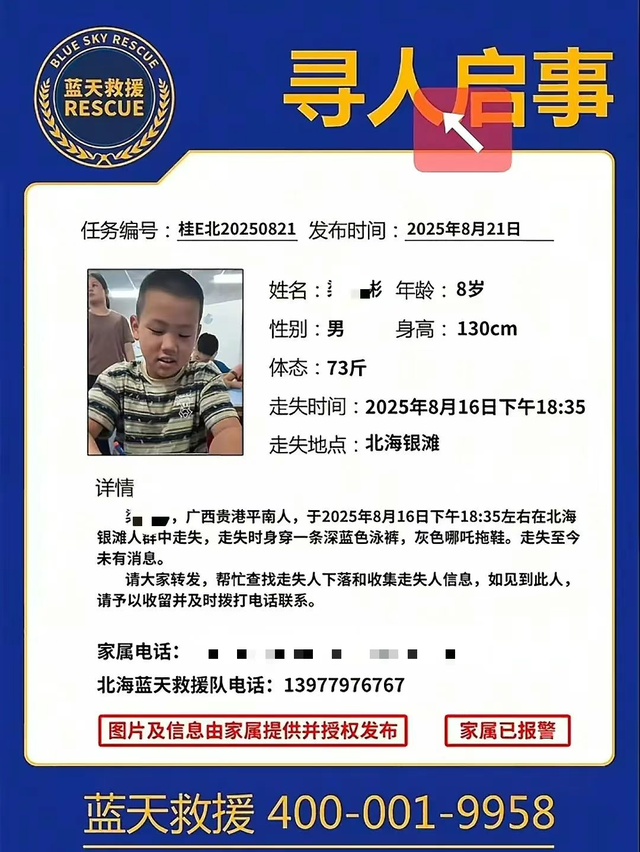 连日来,8岁男孩梁清彬在广西北海市银滩景区走失事件持续引发关注。