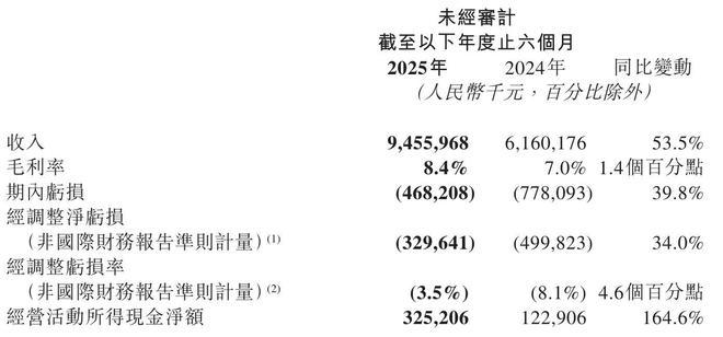 曹操出行2025年上半年期内亏损为4.68亿元,较上年同期的期内亏损7.78亿元收窄39.8%;经调整净亏损3.3亿元,较上年同期的经调整净亏5亿元收窄34%。