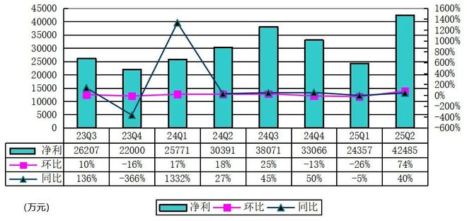 亚朵集团2025年第二季度净利润为4.25亿元(约5900万美元),较2024年同期的3.04亿元增长39.8%。