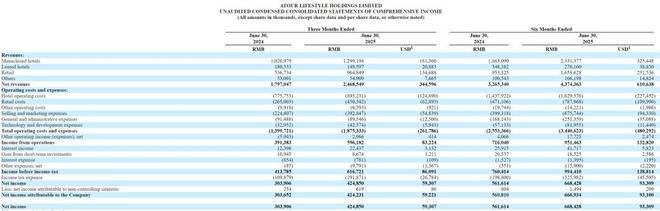 亚朵集团2025年第二季度零售成本为4.51亿元(约6300万美元),而2024年同期为2.65亿元。成本增幅与零售业务的快速增长有关。