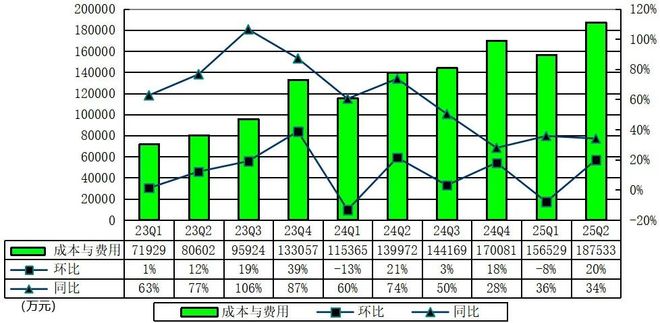 亚朵集团2025年第二季度成本与费用为18.75亿元(约2.62亿美元),较上年同期的14亿元增长34%。